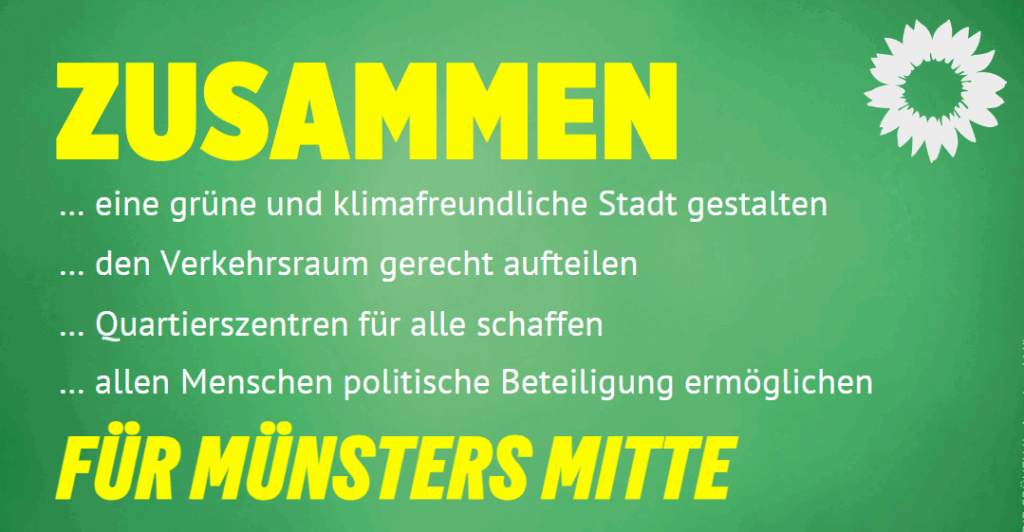 Danke für eure Stimmen! Am 14. September 2025 haben wir in der Kommunalwahl das Ergebnis vom letzten Mal noch toppen können. Die erste Sitzung der Bezirksvertretung Münster-Mitte hat am 11. November 2025 stattgefunden. Tabea Borrmann wurde zur Bezirksbürgermeisterin gewählt. Jetzt kann’s losgehen.
